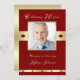 Este fabuloso convite de aniversário de burgundy apresenta uma fotografia como o ponto focal rodeado por um quadro de ouro com bares ouros rodando em cada lado com forma de diamante através de cada bar. Acima da imagem, estão as palavras "Celebrando 70 anos" e abaixo estão as palavras "Por favor, junte-se a nós para homenagear" e, em seguida, o nome do celebrante do aniversário. No verso do convite, você pode colocar todos os detalhes importantes da sua festa de aniversário de 70 em uma cor burgundy coordenada. Direitos autorais