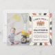 O convite de aniversário do tema circo estilo "vintage" bonito mostra a foto do seu filho ao lado dos detalhes da festa de aniversário. "Venha um, venha todos" aparece em letras de estilo de playbill curvas sobre uma ilustração de tenda de circo de aquarela. Personalize com os primeiros detalhes de festa de aniversário do seu filho abaixo em letras correspondentes acentuadas com estrelas e definidas em um padrão de fundo temático carnaval.
