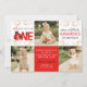 Dourada Watercolor Ladybug 3 Foto Convite de Aniversário - Inclui envelopes com espaço para 3 das suas fotos favoritas! Branco / Vermelho / Preto