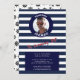 Convite de Aniversário de Foto em Faixa Azul Náuti