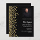 Um moderno, elegante e convite. Um fundo preto decorado com confete de ouro falso. Personalize e adicione fotos, um nome e detalhes da festa. Texto branco. 1 folha = 1 convite impresso de borda a borda.