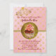Adorável convite de festa de aniversário para o seu filho real, num fundo de coroas douradas a rosa. Dourada tiara no topo e cupcake no centro de luz dourada. Inverso é uma foto pessoal da sua escolha. Todo texto é editável.