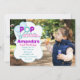 Tenha uma celebração incrível com uma festa de aniversário de bolhas! O convite apresenta um quadro de texto branco com varinha de bolhas e bolhas em azul e roxo sobre o fundo da largura do cheio para que você coloque qualquer foto da sua escolha,