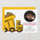 Convite de aniversário de Foto de Caminhão de Construção. Personalize com sua foto e texto.