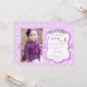 Celebre um aniversário muito especial com este adorável convite de aniversário! Apresenta um quadro bonito para sua foto em um chevron roxo e fundo de bolinhas com sotaques florais.