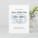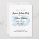 Convites de aniversário simples em branco com texto preto. A idade do destinatário é impressa como fundo em azul claro. As modelos de texto são pretas e o reverso também é azul claro. Mostrado em papel texturizado atualizado que é fácil de mudar.