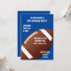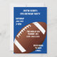 Convite de aniversário azul, com gráficos do futebol marrom. Personalize o texto branco para a festa de aniversário desportiva do seu filho. Estão disponíveis suprimentos de partes correspondentes.