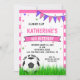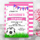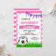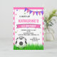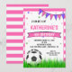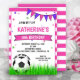"Vamos chuta alguma diversão" com nosso Modelo de Convite de aniversário de Futebol Rosa! Perfeito para uma comemoração de 10 anos, este convite cor-de-rosa define o palco para um tema excitante da festa de futebol. Envie estes convites para a festa esportiva personalizada em breve. Disponível como download instantâneo ou envie-os para você. - Ordem agora! ©TKM Party Printables