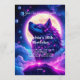 Uive para as estrelas! Este convite de aniversário cósmico apresenta um lobo majestoso silhuetado contra uma galáxia brilhante cheia de estrelas e uma nebulosa do espaço profundo. Perfeito para uma celebração fora deste mundo.