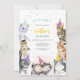 Celebre o dia especial do seu pequeno com este adorável convite de festa de aniversário temático de gatos! Com oito gatos brincalhões usando chapéus coloridos de festa cercados por confetes festivos, este design é perfeito para a celebração do aniversário de uma criança. As cores vibrantes e ilustrações alegres criam uma atmosfera divertida e caprichosa que os convidados vão adorar. Personalize com os detalhes da sua festa para torná-lo único e defina o tom para um evento memorável.