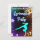 Prepare-se para uma diversão séria com este Convite de festas de ginástica enérgica! A design mostra uma silhueta de ginastas teal tocando um apoio de mão contra um pano de fundo de estrelas cintilantes em um vibrante esquema roxo, verde e dourado. É perfeito para capturar o entusiasmo e a energia de uma comemoração de ginástica. Personalize este convite com os detalhes do seu partido para criar uma manutenção verdadeiramente única para os seus convidados!