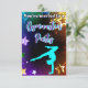 Prepare-se para uma diversão séria com este Convite de festas de ginástica enérgica! A design mostra uma silhueta de ginastas teal tocando um apoio de mão contra um pano de fundo de estrelas cintilantes em um vibrante esquema roxo, verde e dourado. É perfeito para capturar o entusiasmo e a energia de uma comemoração de ginástica. Personalize este convite com os detalhes do seu partido para criar uma manutenção verdadeiramente única para os seus convidados!