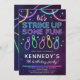 Edite o texto e use o design para qualquer festa de boliche ou evento. Cores divertidas e brilhantes para Boliche Cósmico. Características cores neon brilhantes, estrelas, caixas de boliche e bola de boliche no verso.