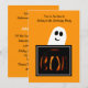 Você está planejando uma Festa de aniversário de Halloween, então por que não começar a festa com este convite de aniversário de Halloween excelente com uma abóbora esculpida e um fantasma? Direitos autorais