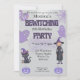 Um convite de aniversário divertido no Halloween com uma bruxa amigável, gato preto, fantasmas e abóboras. Perfeito para uma festa assustadora de uma criança. Texto totalmente editável para personalizar o nome, a idade, a data, a hora e os detalhes da festa.