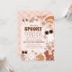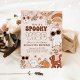 Celebre seu aniversário de Halloween com uma reviravolta! Este convite de aniversário de "Spooky Vibe" do Dia das Bruxas apresenta gráficos lúdicos e inspirados em vintage, tons retrorreflectores cor-de-rosa e castanhos e elementos assustadores — perfeito para uma celebração divertida e na moda de outubro.