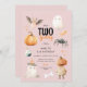 Celebre o seu segundo aniversário com um toque de charme assustador! Este adorável convite de aniversário do tema "Ela é duas assustadoras" apresenta uma série encantadora de personagens bonitinhos do Halloween, incluindo fantasmas amigáveis, um morcego fofo, abóboras e aranhas. A cor rosa pastel macio e as ilustrações brancas dão um tom festivo, mas gentil, perfeito para a primeira comemoração de aniversário.