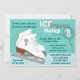 Este belo convite de festas de patinação de gelo "Ice Princess" em tons de AQUA BLUE e brilhante SILVER e WHITE é perfeito para a sua pequena patinadora. Os skates de gelo são embelezados com um medalhão de neve prateado e um balão bonito que corresponde exibe a idade de aniversário da criança.