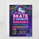 skate de vamos e comemoração! Convide seus amigos para um aniversário de patinação no gelo de inverno! Convite de aniversário de patinação no gelo para raparigas com flocos de neve, skate de gelo e cores brilhantes do arco-íris.