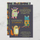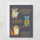 Hora de uma festa de monstro! Um bando de monstrinhos adoráveis, prontos para personalizar com o nome do seu filho, idade e detalhes da festa. Excelente para qualquer garoto ou garota, ou até para o Halloween. A parte de trás apresenta um padrão de monstros correspondente. Arte original de Nic Squirrell.