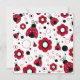 Este convite para festas de aniversário 5.25x5.25 tem um tema de ladybug. A borda de cima e de baixo tem insetos negros e vermelhos com flores e polkadots. Há uma garota de cabelo castanho vestindo um vestido de polkadot ao lado de sua informação festiva facilmente personalizável.