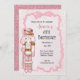 Convite de aniversário de inverno cor-de-rosa Nutcracker. Personalize os detalhes do seu próprio evento.