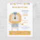Cartaz de um cartaz do partido "Não somos Li-on!" para o aniversário de um menino de um ano, apresentando um leão orgulhoso com uma coroa azul vestindo uma camisa arco-íris em tons de ouro laranja e blues com texto em cores compatíveis. Seu endereço e mensagem de retorno estão no contrário. Preencha suas próprias informações nos campos de modelo fornecidos.