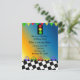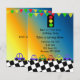 Um design divertido com uma fronteira marcada com carros de corrida. Um semáforo e uma faixa de aniversário divertida. Personalize com as informações de sua parte conforme desejado.