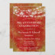 Um convite de aniversário de casamento ricamente colorido em vermelho com um fundo metálico dourado falso desgastado e luzes festivas penduradas. Perfeito para aniversários de casamento marcantes como 5º, 10º, 15º, 20º, 25º, 30º, 35º, 40º, 45º, 50º, 55º, 60º ...ou qualquer ano!