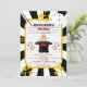 Abracadabra! Aqui está um convite de aniversário de um mágico que mostra o chapéu mágico, varinha, e 4 Aces em um fundo de raios preto e branco. Perfeito para convites de festas de aniversários de rapazes ou raparigas.