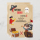 Marque uma aventura emocionante com este convite de aniversário de temas piratas! Com um mapa divertido do tesouro, uma nave pirata, e um personagem pirata brincalhão, este convite é perfeito para pequenos exploradores. Personalize-o com o nome, a idade e os detalhes da festa da criança de aniversário para uma comemoração inesquecível!