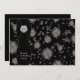 Fundo preto com margarida prateada gravada com modelo de convite de festas de borda estendida com diamante preto na moda. Personalize a frente e a parte traseira com as informações da sua parte ou evento. Altere o estilo e a cor da fonte e a cor do plano de fundo conforme desejado. Belo, elegante aniversário de margarida floral negra ou modelo de convite de festas especial.