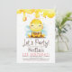 Convite de festas de primeiro aniversario de abelha de mel amarelo e rosa. Fundo de aquarela e striped para trás.