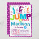 MODELO DE CONVITE DE ANIVERSÁRIO DE MENINA ROSA FESTA DE SALTO Ciano, Azul, Roxo, Rosa, Estrelas e Pontos Coloridos Fundo Rosa e Roxo