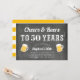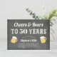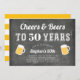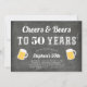 Celebre o aniversário de milestone dele com esses convites de festa festivos que apresentam "cheers e beers para XX anos" em letras brancas em um fundo de quadro-negro escovado adornado com ilustrações de duas canecas de cerveja. Personalize com os detalhes da sua festa abaixo. Exemplo mostrado para um aniversário de 50 anos.