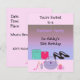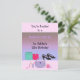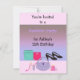 Um convite divertido e na moda para uma festa de aniversário de moda. Um fundo cor-de-rosa suave com um indefinido roxo sombreado e um agrupamento divertido de acessórios em cores brilhantes. Personalize com as informações da parte conforme desejado.