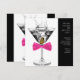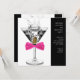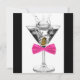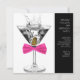 Convite de aniversário de martini para mulher. Este convite de aniversário de martini com laço rosa quente funciona muito bem para uma festa de aniversário de mulher de qualquer idade, aposentadoria, evento corporativo de gala, festa de martini ou despedida de solteira. Adicione seus detalhes na frente e/ou no verso deste convite de aniversário de martini com laço rosa quente, adicionando detalhes do evento, estilo de fonte, tamanho e cor da fonte e texto.