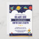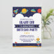 Aproxima-se a outra galáxia com este convite de aniversário divertido, com uma nave espacial, planetas, estrelas e muito mais. Basta adicionar os detalhes da sua festa para personalizar.