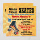 Prepare-se para o Skate Rock and Roller com o convite de aniversário fumante de patinagem a quente. Possui um skate preto com chamas em um fundo de explosão solar com chamas transparentes. Ilustração desenhada à mão por McBooboo.