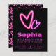 Convide amigos e família para comemorar o aniversário do seu filho com este convite de corações cor-de-rosa retrô