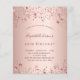 Um convite moderno, na moda e glamouroso para uma festa de aniversário 10 (ou qualquer idade). Um fundo metálico rosa dourado falso com uma elegante estrela rosa dourada girando. O nome é escrito com um moderno e escuro, rosa dourado, escrito com letra de estilo manuscrito. Modelos para os detalhes da sua festa.