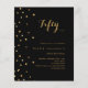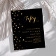 Para uma elegante festa de aniversário 50th (ou qualquer idade). Um clássico fundo negro. Decorado com estrelas douradas falsas. Personalize e adicione um nome e detalhes da parte. 1 folha = 1 convite impresso de borda a borda.