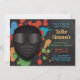 Um convite de aniversário de pinball divertido e colorido. Este convite é excelente para crianças e adolescentes. Ele apresenta uma máscara ou capacete com pintura de pinball divertida espalhada no fundo. Este convite é gentil, legal e quadril.