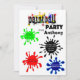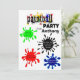 Comece a comemorar bem com um convite de paintball para aquele aniversário especial. Este é um convite brilhante para uma festa de pinball com bolhas de pingos coloridos de tinta. Personalize o convite com as informações da sua festa.