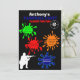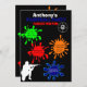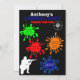 Comece a comemorar bem com um convite de paintball para aquele aniversário especial. Este é um convite brilhante para uma festa de pinball com bolhas de pingos coloridos de tinta. Personalize o convite com as informações da sua festa.