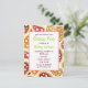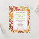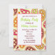 Um convite de aniversário colorido com um padrão cor-de-rosa, verde, burgundy, laranja e paisley dourado na frente e atrás. Personalize o texto arrojado e verde com detalhes da sua ocasião.