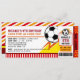 Venha chutar um pouco de diversão! Celebre a sua Festa de aniversário temática de futebol com o nosso Convite de festas de futebol vermelho. Este convite para ingresso apresenta uma bola moderna de futebol ao admitir um modelo de ingresso de futebol. Perfeito para a sua festa de aniversário temática desportiva estelar, a primeira festa de aniversário de futebol, a festa de aniversário de futebol ou os convites de festas de futebol de quintal.