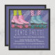 Skates divertidos e divertidos em padrões e bolinhas estão rolando neste brilhante e colorido convite de aniversário de patins.