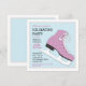Um skate de gelo giro e engraçado em um padrão de diamante roxo colorido, colocado sobre um fundo de neve de azul gelado, decora esse convite de aniversário feliz, giro e gelo patinando sobre o tema.