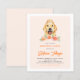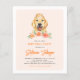 Convide convidados para o seu evento com este convite de aniversário personalizável. Apresenta ilustrações de aquarela de um Ouro bonito, Retriever e flores de pêssego. Personalize adicionando seus detalhes. Este belo convite do Retriever de Ouros é perfeito para aniversários, chás de fraldas e outros eventos.